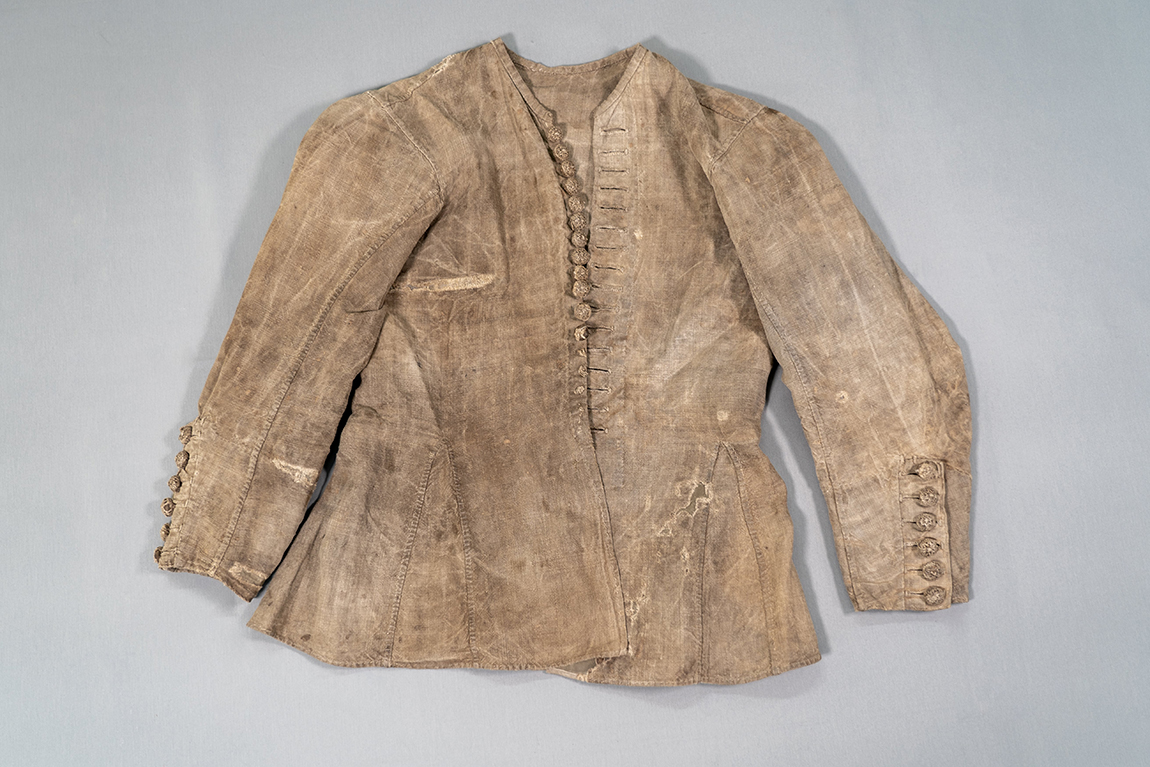 Кафтанчик юнги, как прозвали его журналисты, и все остальные артефакты с «Архангела Рафаила», проходили консервацию в собственной лаборатории ЦПИ РГО. На самом деле, кафтан мог принадлежать взрослому члену экипажа, а его небольшой размер можно объяснить...прошедшими веками. Мы знаем, что с каждым десятилетием средний рост homo sapiens увеличивается. Поэтому вполне возможно, что кафтан, сегодня подходящий только ребенку, в 1724 году был в гардеробе взрослого моряка. Кстати, в этой плотной льняной рубашке явно активно работали – в отличие от горчичного шерстяного кафтана, который нашли еще в 2014 году, – на этом есть «прижизненные» утраты. Хотя деревянные пуговички, обмотанные шнуром, почти все сохранились.